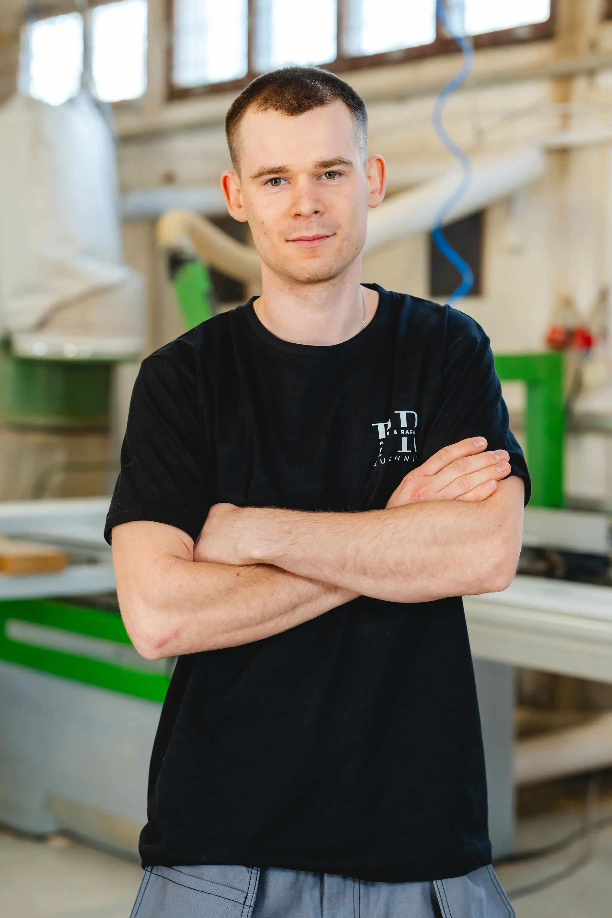 Specjalista skupiony na projektowaniu technicznym mebli. Jego zadaniem jest precyzyjne przełożenie ustaleń na projekt 3D i rzuty techniczne. Gwarantuje bezwzględną zgodność projektu z ergonomią i wymogami produkcyjnymi.
