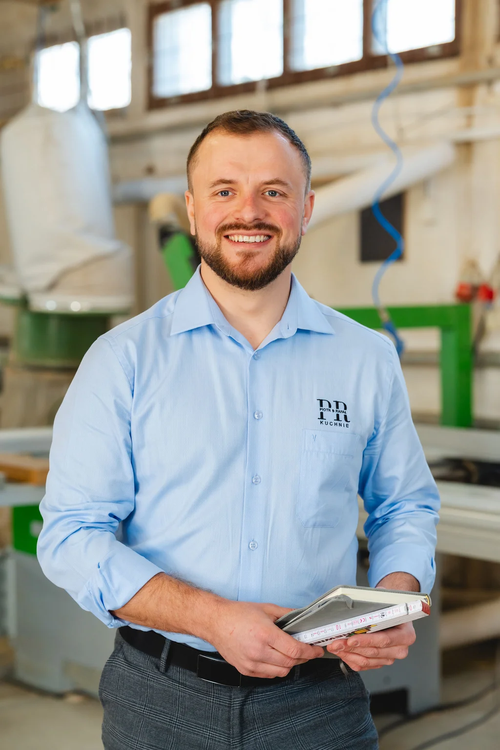 Łączy projektowanie z obsługą klienta. Mateusz umówi się z Tobą na spotkanie, stworzy dla Ciebie idealny układ kuchni oraz wizualizację. Przeprowadzi Cię także przez cały proces współpracy od pierwszego kontaktu do odbioru końcowego mebli.
